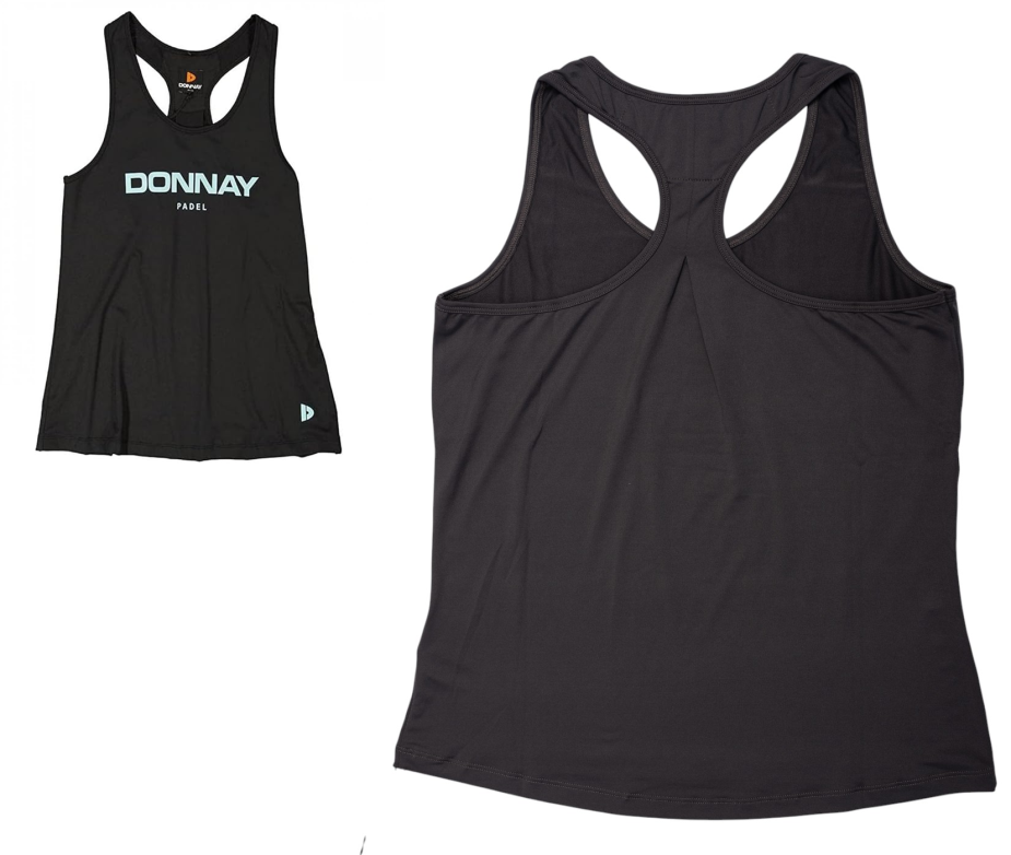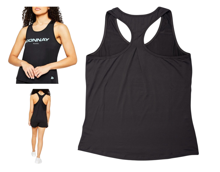 Top tiffany; color negro; talla s; marca donnay: la camiseta donnay tiffany pitch black es sinónimo de comodidad, frescura y originalidad. confeccionada con un 94% de poliéster y 6% de elastano, se presenta como una prenda imprescindible para el verano gracias a su tejido ligero y suave que permite que la piel respire sin irritaciones.