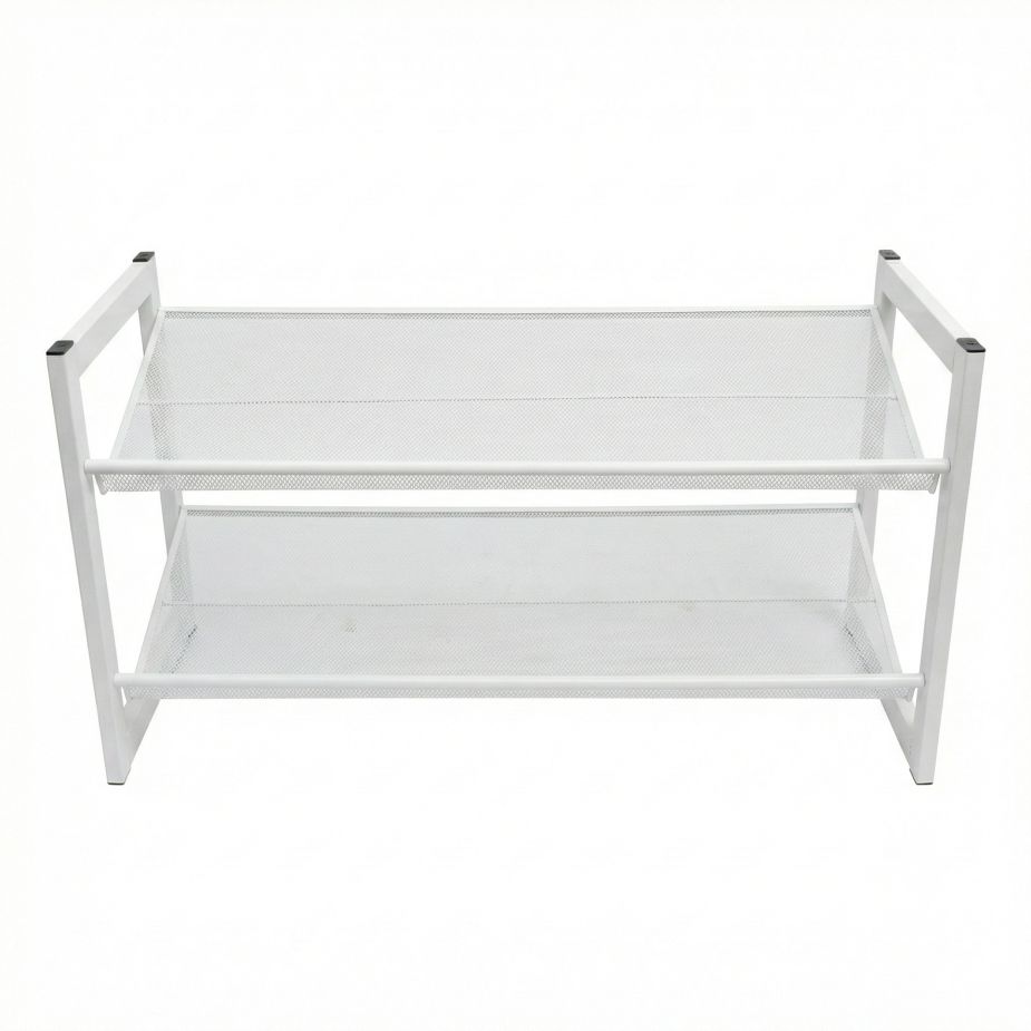 Zapatera 2 niveles: marca kennedy; color blanco; ideal para la organización de zapatos y accesorios; se ajusta permitiendo un ajuste plano o en ángulo; cuenta con un borde que evita que los zapatos se caigan. malla metálica; base ajustable; material: cuenta con una construcción duradera totalmente metálica, con estantes de malla perforada; cuenta 2 niveles de almacenamiento; se puede almacenar 6 pares de zapatos; este organizador cuenta con excelente estructura. resistencia y durabilidad a su alcance. este organizador ahorra espacio también se puede poner en una esquina o en un pasillo es perfecto para mantener los zapatos en orden.