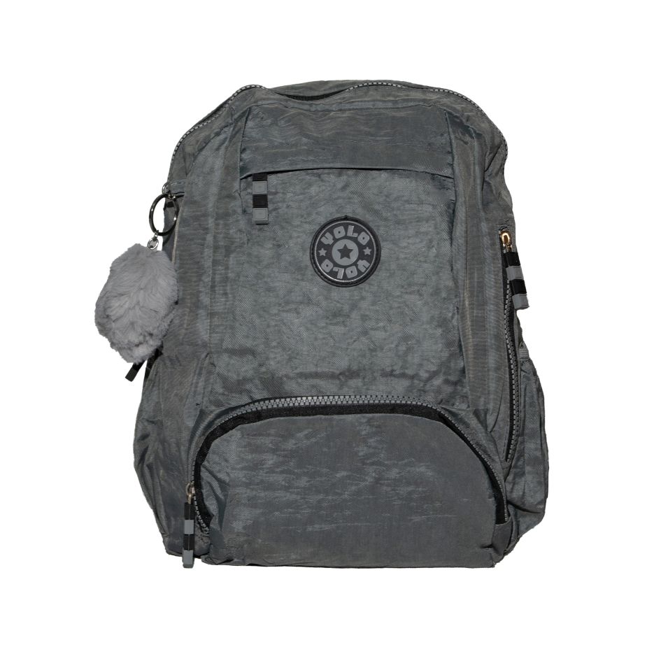 Mini mochila yolo; color gris claro; marca yolo: esta pieza versátil combina funcionalidad y un diseño moderno con un toque delicado. confeccionada en nylon arrugado, ofrece una textura contemporánea que garantiza ligereza, resistencia al uso diario y un fácil mantenimiento, ideal para actividades académicas o salidas informales.
