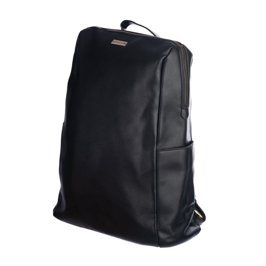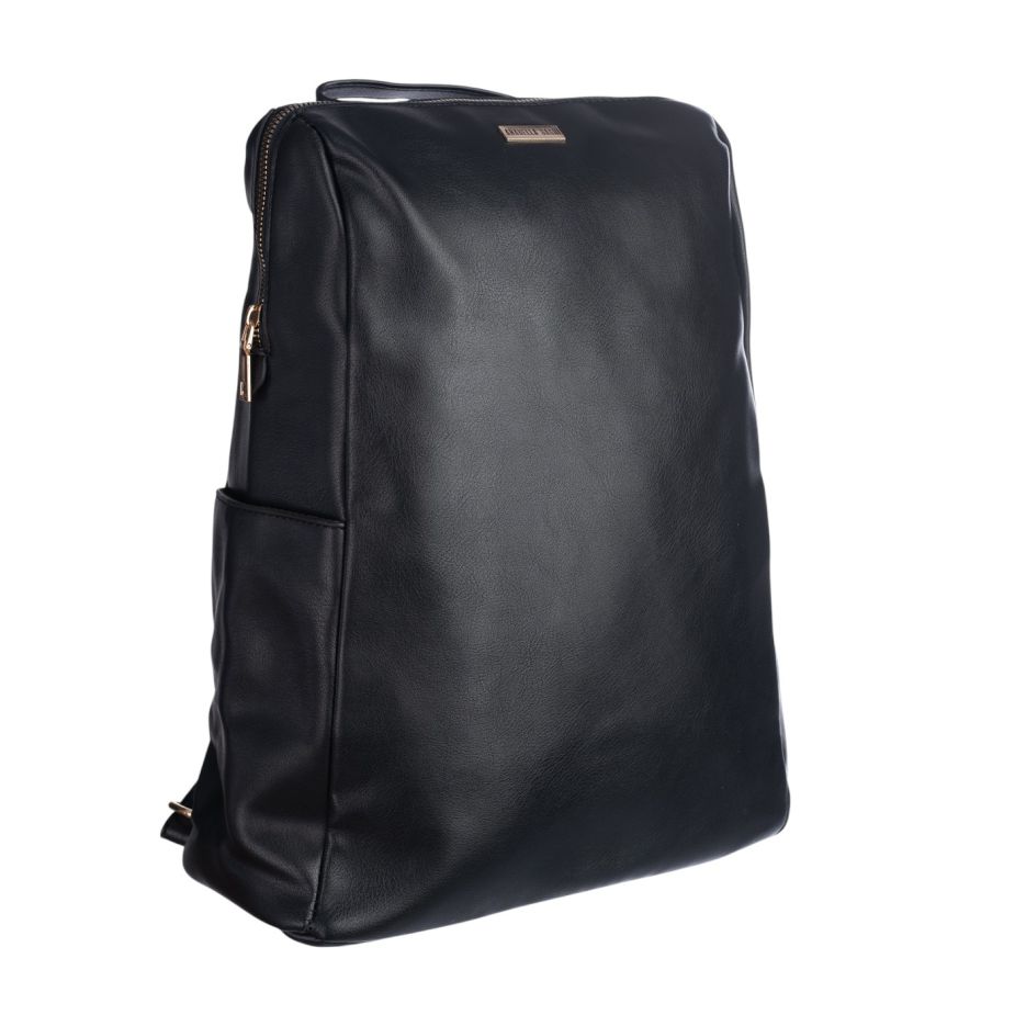 Mochila juvenil; color negro; marca anabella sanchi: moderna y elegante mochila unisex confeccionada en 100% poliuretano. su diseño minimalista en color negro transmite sofisticación y versatilidad, siendo ideal para entornos laborales, académicos o el uso diario.